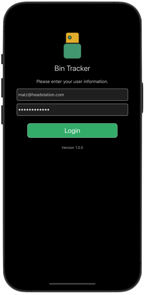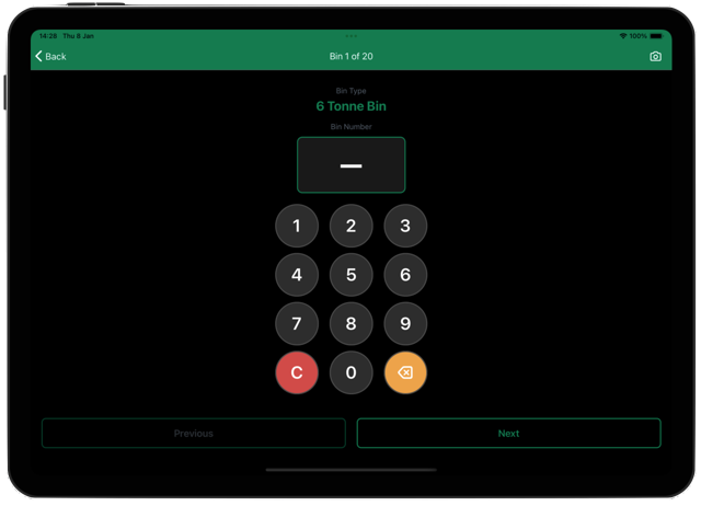 A device can be attached to a specific vehicle which will then filter consignment to only those relevant to the vehicle. Typical entry screen in the BinTracker app:
