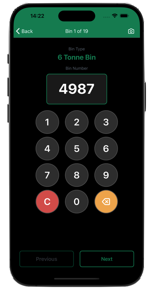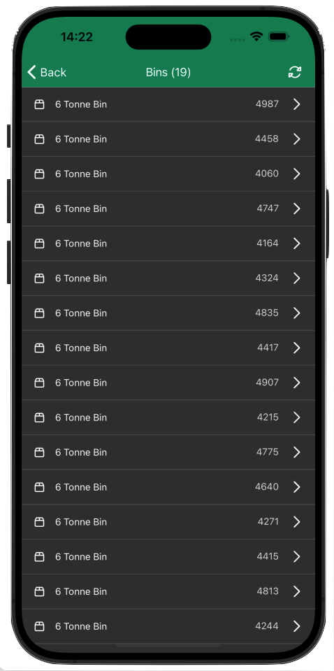 - From a consignment note provided by the Haulout operator or left at the Siding, the bin numbers can be transferred to BinTracker via rapid entry key pad screen installed in the Haulage vehicle.