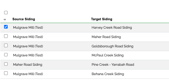 Provides a list of sidings enabling operator to define from where the consignment is going to its destination. This can be a field siding or the sugar mill itself spatially derived from a custom traffic network.