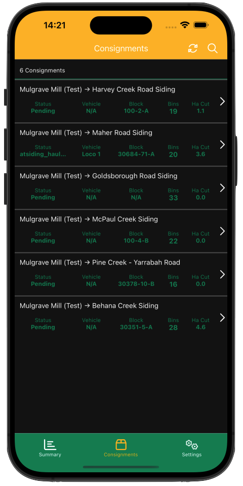 The BinTracker solution provides and end-to-end solution from creating a new consignment nominating its target siding and defining count of bins through to entering a siding and dropping of the consignment.